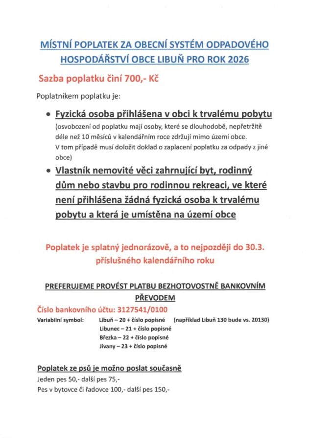 V Libunci dne 10.1.2026 od 13:00 hodin